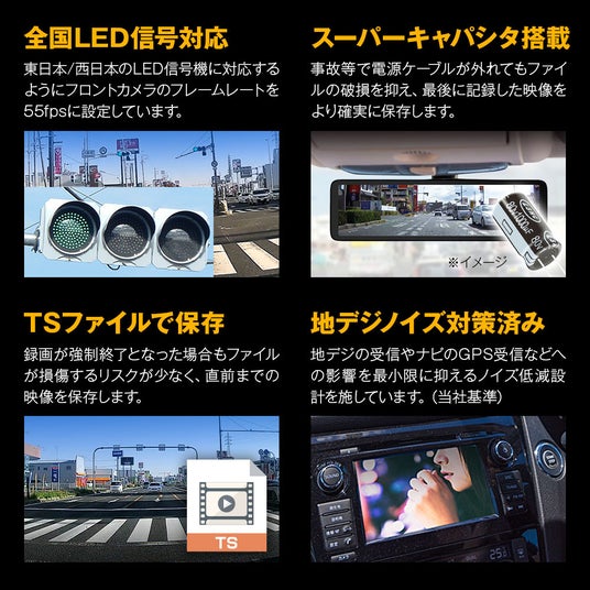 ※フロントカメラはLED信号に対応させるため55fpsを採用。