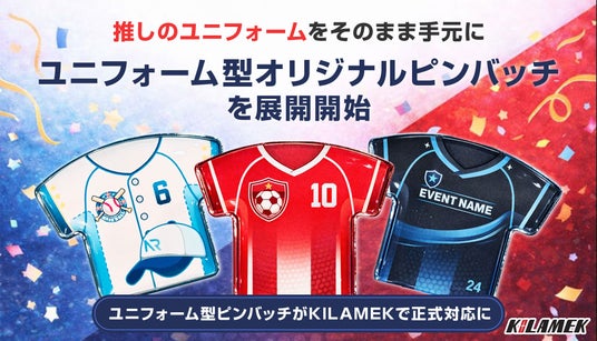 株式会社KILAMEK(東京都新宿区)は、ファンイベントやスポーツ団体向けに「ユニフォーム型オリジナルピンバッチ」の名入れ製作サービスを正式に開始いたしました。