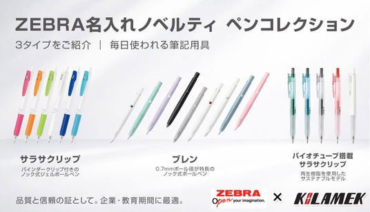 株式会社KILAMEK(本社:東京都新宿区)はこのたび、日本を代表する総合筆記具メーカー「ZEBRA(ゼブラ)」製ボールペンを、法人向け名入れノベルティとして取り扱い開始いたしました。