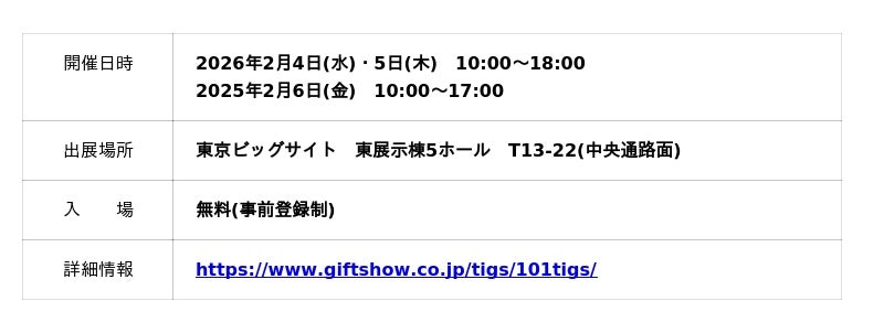 cocochi factoryは2026年2月4日(水)~6日(金)に東京ビッグサイトで開催される「第101回 東京インターナショナル・ギフト・ショー 春2026」に出展いたします。