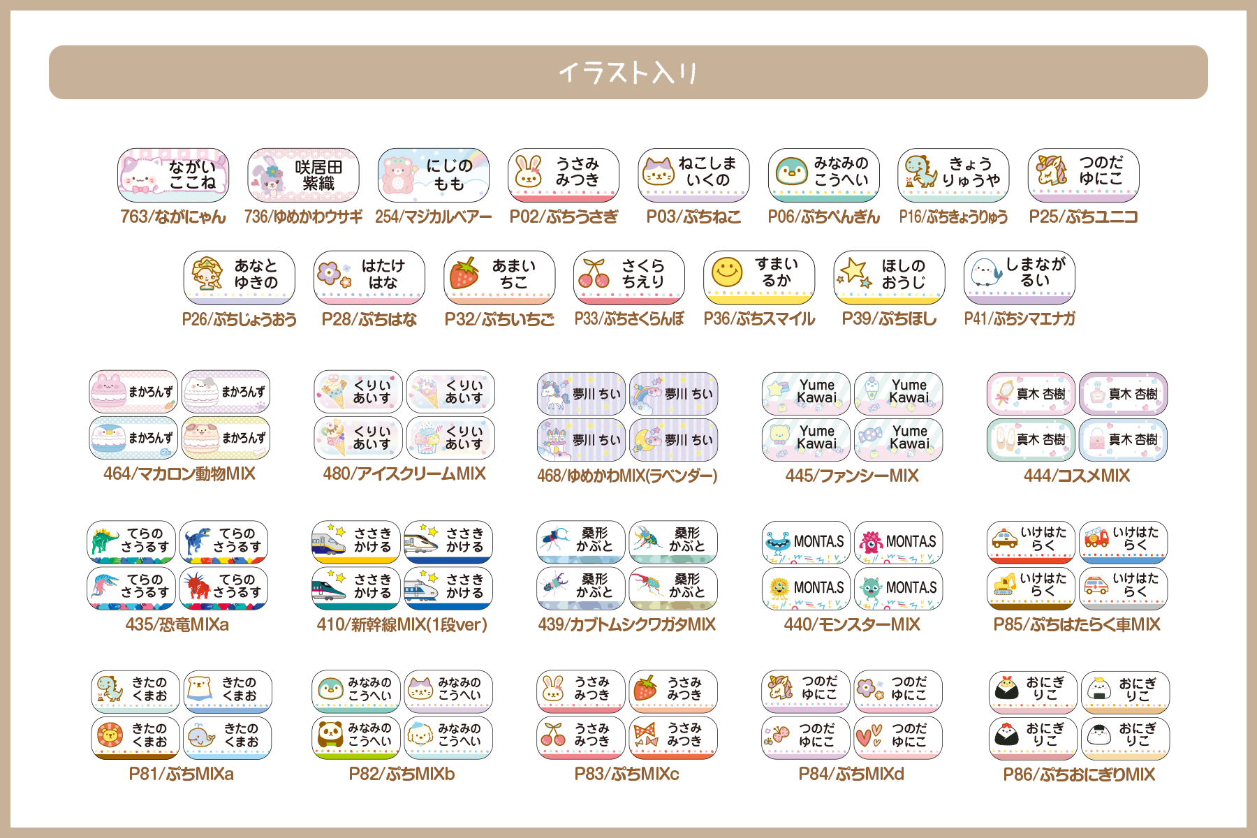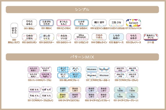 入園準備から小学校高学年まで使える、シンプル~イラスト入りの70デザインをご用意。特に小学生に人気のデザインから厳選したデザインをセレクトしました。1種類ですが縦文字もご用意しています。