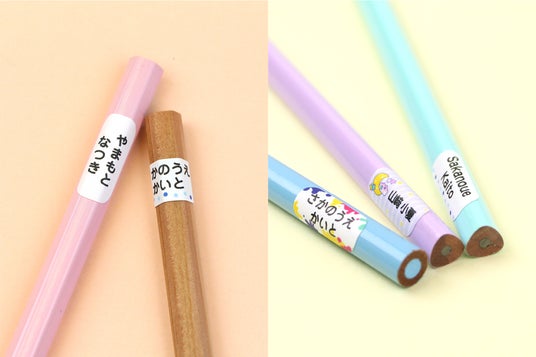 そんな鉛筆などの名前つけ作業をサッと終わらせられる「えんぴつシール」は、強粘着で鉛筆の強いカーブにピタッと密着。マジックで書くよりも時短でキレイに仕上がります。