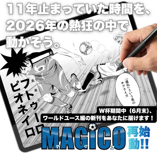 株式会社PiCSTORY(所在地:宮城県仙台市青葉区)は、雑誌休刊により未完となったサッカー漫画『MAGiCO』ワールドユース編を2026年サッカーW杯開催中に“一冊で読み切れる形”で完成させる制作プロジェクトで、本日クラウドファンディングプラットフォーム「CAMPFIRE」にて公開されます。