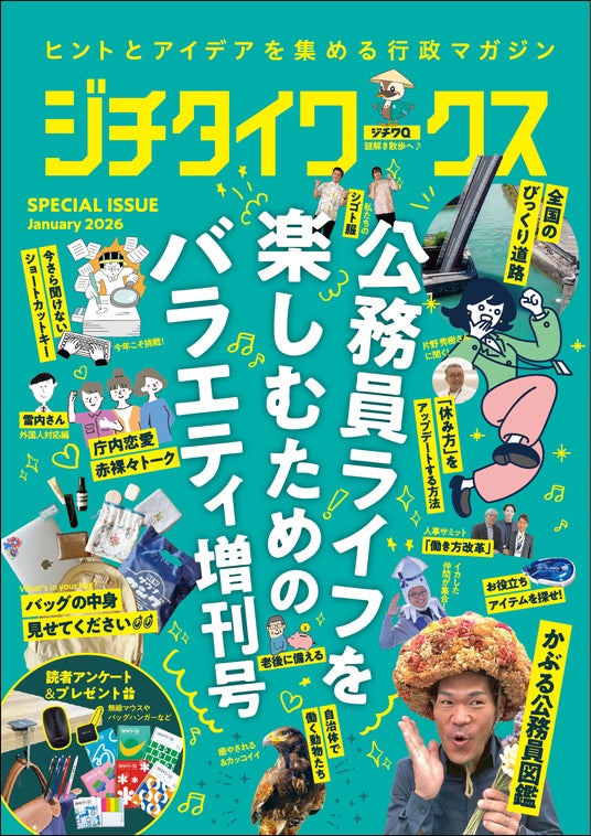 官民連携・自治体同士の連携の促進を目的とする媒体発行・プロモーション支援事業等を行う株式会社ジチタイワークス(本社:福岡県福岡市、代表取締役社長:森新平)は、ヒントとアイデアを集める行政マガジン『ジチタイワークス』の増刊号として、「公務員ライフを楽しむためのバラエティ増刊号 January 2026」を2026年1月27日(火)に発行いたしましたのでお知らせいたします。