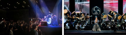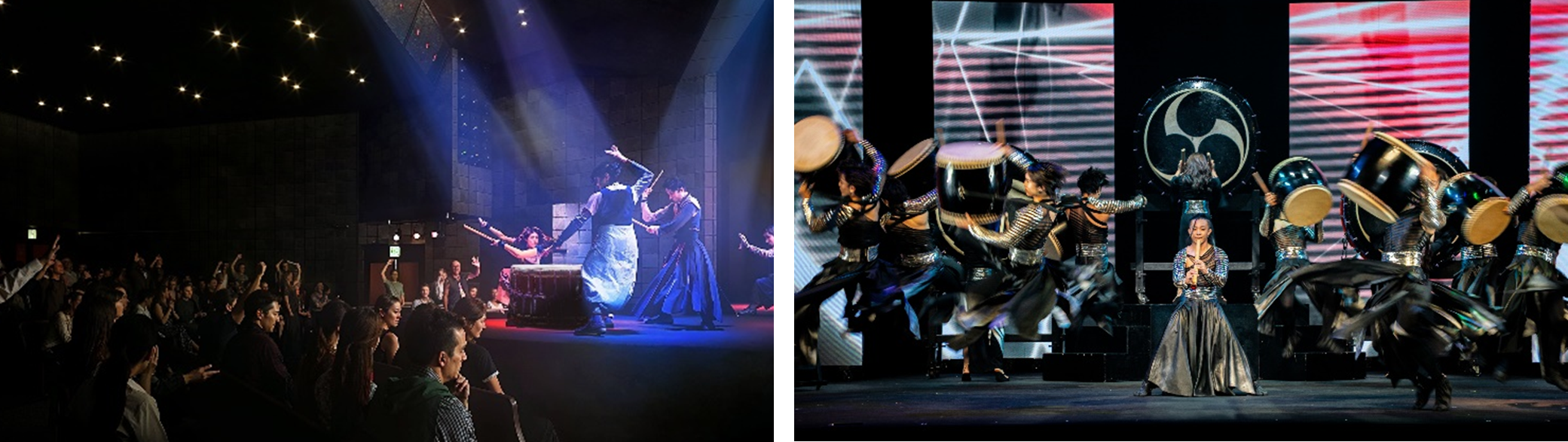 本劇場では、19 時と21 時からの1 日2 回公演を開催し、第一部/第二部の入れ替え制です。約300 席の劇場ならではの一体感と、和太鼓の迫力や出演者のエネルギーをダイレクトに至近距離でお楽しみいただけます。