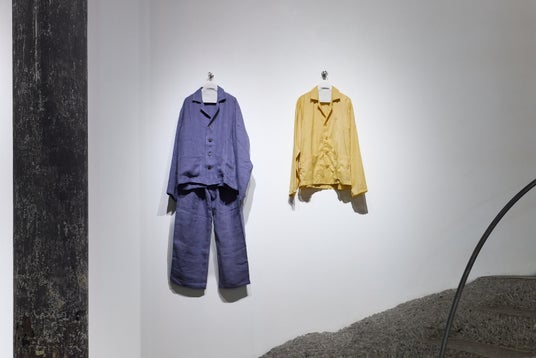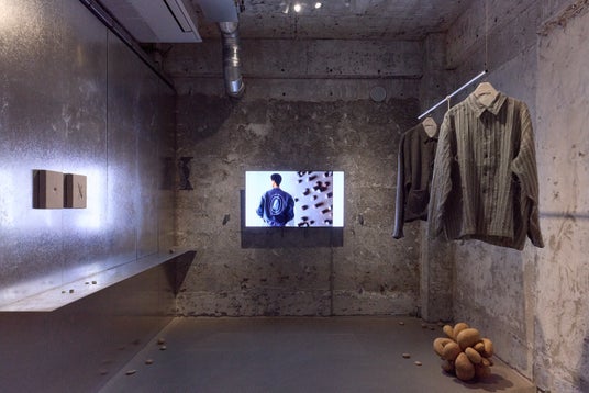 会場は、主に麻を使用した一点物の衣服を生み出すファッションブランド「CHNEIDER」の作品と、木という存在に寄り添い続ける彫刻家・高山瑞の作品で構成されています。