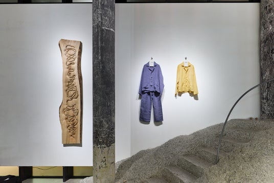 彫刻家・高山瑞の木彫作品と、ファッションブランド〈CHNEIDER〉による一点物の衣服が香りや音とともにひとつの空間で混ざり合う企画展。2月7日(土)まで開催。
