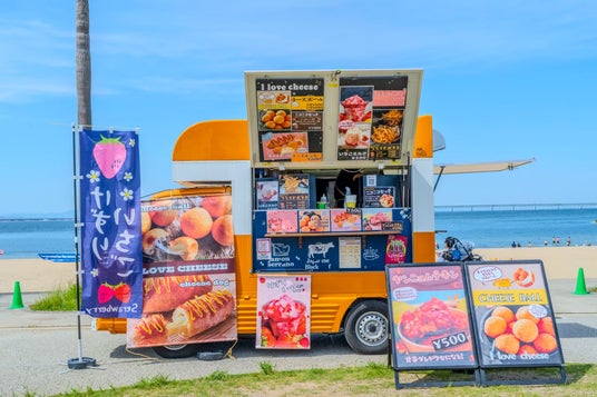 魅力的なフードトラックが立ち並びます。