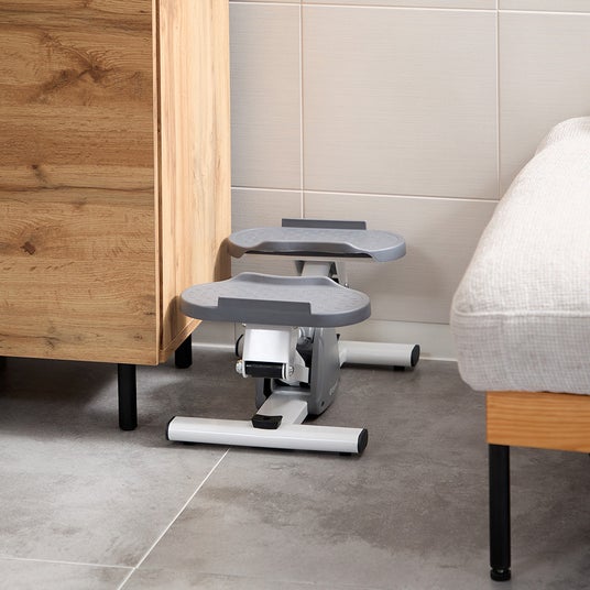 そこで当社は、自宅で手軽に全身の運動ができるよう、当商品を開発しました。当商品は、ステップを左右に踏み込むことで、太ももや臀部など下半身の運動ができる商品です。バランスの維持が求められるため、体幹の筋肉も活性化されます。腕を大きく振りながら踏むと、背中や胸、腕のエクササイズにもなります。本を読んだり、テレビを見たりしながら使うこともできるため、忙しい人の「ながら運動」にも適しています。