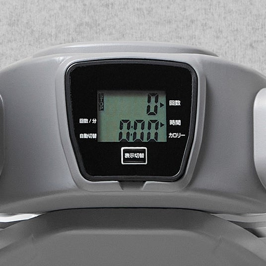 2.モニター付きで運動量を可視化本体中央部に、回数、時間、消費カロリー、1分あたりの回数を確認できるモニターがついています。運動量を数字で確認することができ、目標設定に役立ちます。