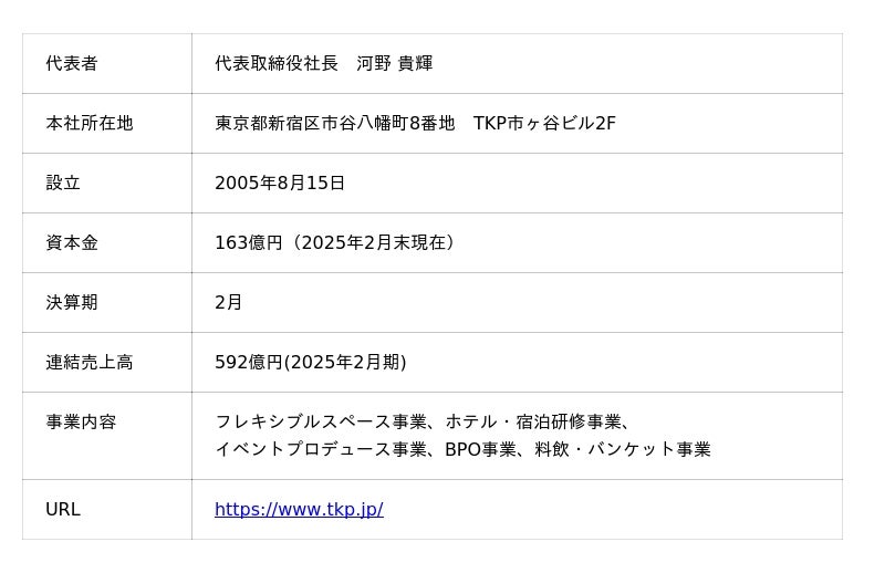 〈企業情報〉https://www.tkp.jp/ 〈IR情報〉https://www.tkp.jp/ir/