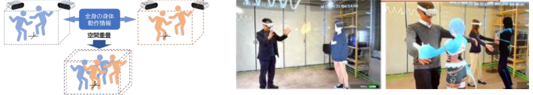 「空間重畳技術」とは、ARゴーグルを装着することで、離れた場所にいる複数の人々がお互いの距離感や動きを感じながら、あたかも同じ空間にいるかのような没入型コミュニケーションができる技術です。既存のビデオ通話による画面越しのコミュニケーションとは異なり、アバターを通じてジェスチャーや立体音響を組み合わせることで、実際に目の前に相手が存在するかのような感覚を持つことができ、離れた場所を重ね合わせて交流することが可能になります。世界的にも類を見ない日本発の先端技術であり、距離や場所の制約を超えて、多様な産業における課題解決に貢献しうる技術です。