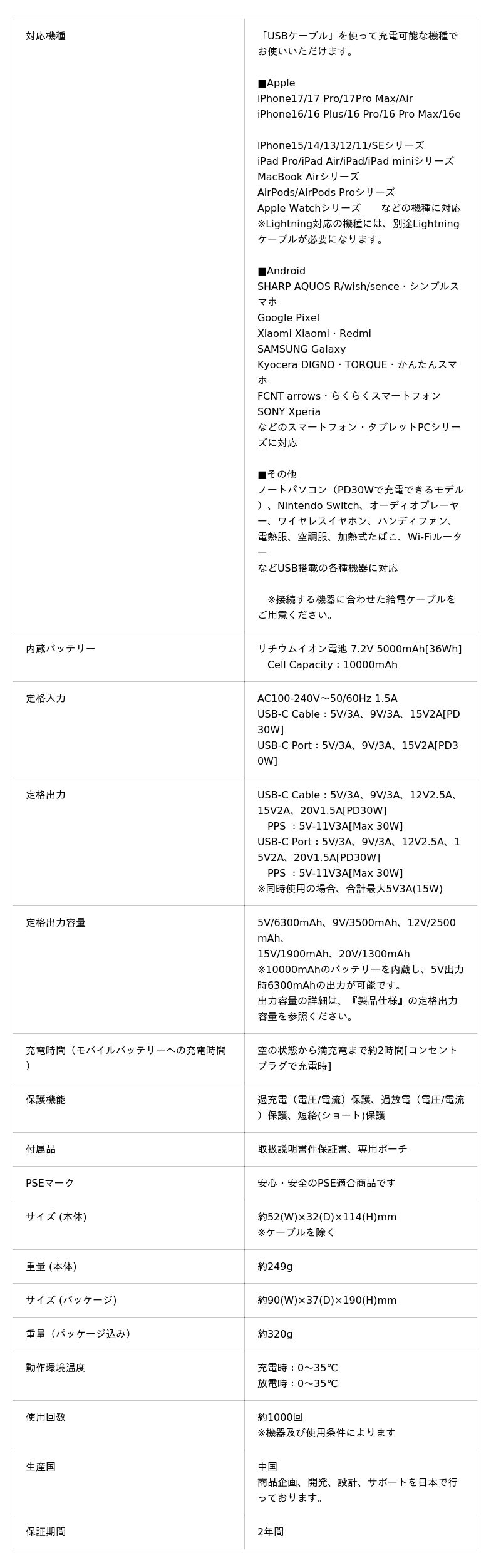 AC充電器にさらにケーブルが一体型になった、1台3役になるモバイルバッテリーです。コンセントからでもバッテリーからでも、どちらで使用しても最大30Wの急速充電が可能。