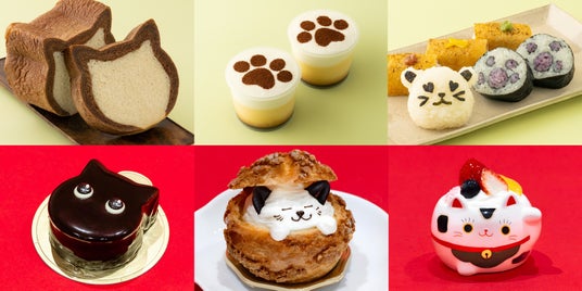 ネコ型食パンや肉球モチーフの巻き寿司、猫の顔がひょっこりのぞくシュークリームが登場!猫モチーフのメガネや猫のトートバッグなど、猫グッズも見逃せない!