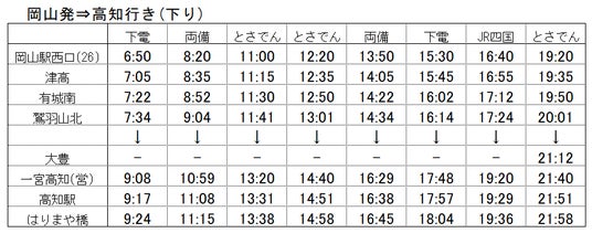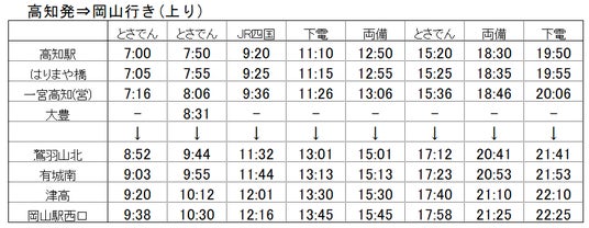 高知発→岡山行きの最終便は22:25着のため、当日中に山陽新幹線への乗継も可能です。