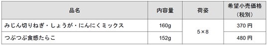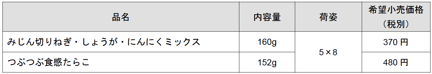 エスビー食品株式会社は、刻む手間や下ごしらえが不要で、いつでも必要な分だけ使える「つぶつぶ食感たらこ」「みじん切りねぎ・しょうが・にんにくミックス」をリフレッシュします。