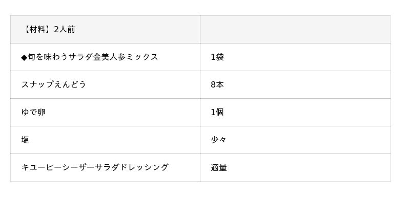「旬を味わうサラダ ミックス」は、季節を感じられる野菜を使用した「旬を味わうサラダ」シリーズの期間限定商品です。本商品は、配合野菜の約8割が人参で構成されており、そのうちの半分以上に、冬から春に旬を迎える国産の“金美人参”を使用しています。金美人参は、通常の人参よりも甘みが強く、肉質もやわらかいので生食にぴったりな食材です。通常の人参と比べ匂いのクセも少なく、野菜が苦手なお子さまにもおすすめです。鮮やかな黄色が特長で、食卓を華やかに彩ります。