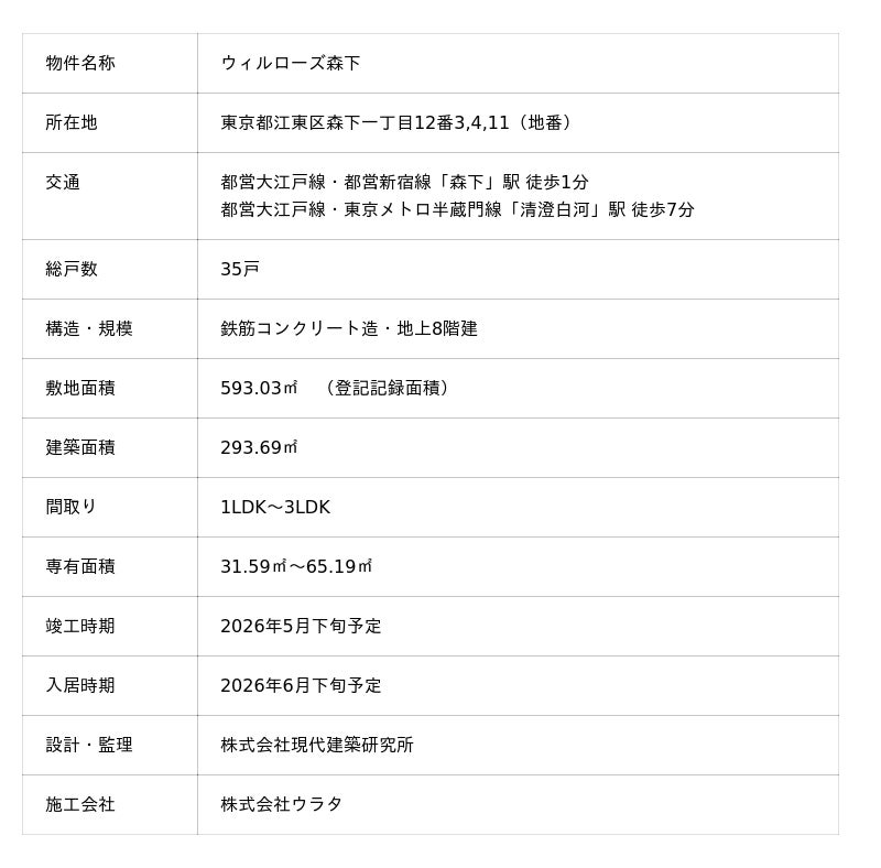 株式会社THEグローバル社(https://www.the-g.co.jp/)は、東京都江東区において販売しておりました新築分譲マンション『ウィルローズ森下』が全戸契約完売しました。