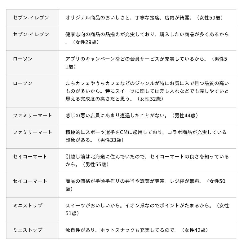 1. 信頼性・安心感があるコンビニエンスストア