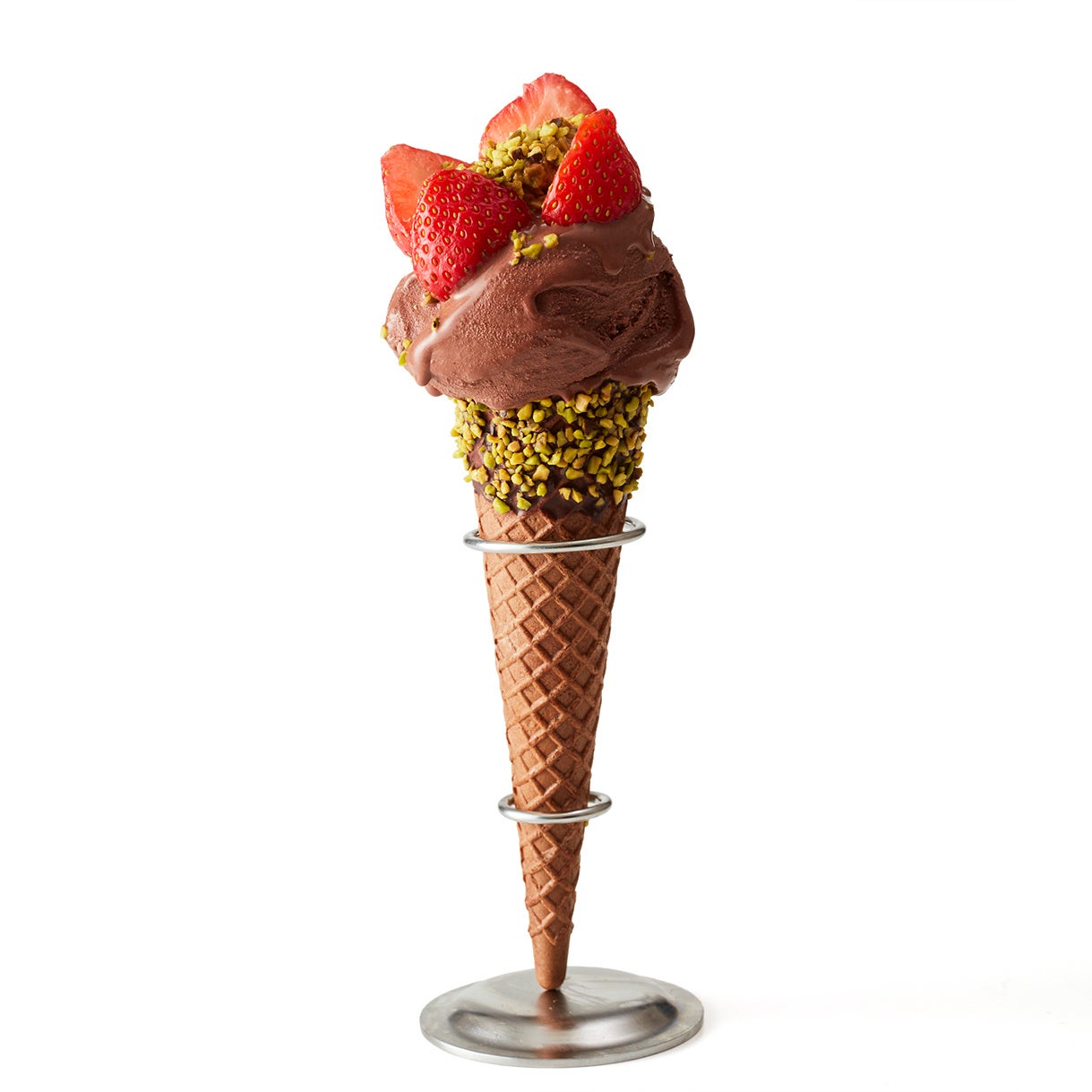 ジェラートに、パリッとした食感が楽しいチョコレートやローストピスタチオ、甘酸っぱいフレッシュなイチゴ、香ばしいカダイフ、ウエハースなど、多彩な素材を組み合わせた創作ジェラートです。