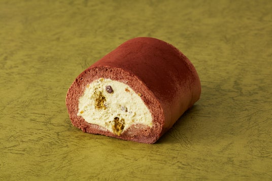新作のロールケーキは「ドバイチョコレート」からインスパイア。カカオが香るふんわりと焼き上げた生地で、チョコチップやカダイフ、ローストピスタチオなど、多彩な食感が広がるピスタチオクリームを包み込みました。