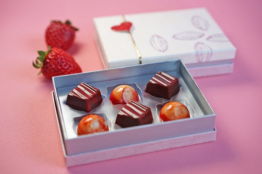 あまりんボンボンショコラは、埼玉生まれの希少いちご「あまりん」のおいしさと香りをぎゅっと濃縮し、ダークチョコレートとホワイトチョコレートに合わせました。
