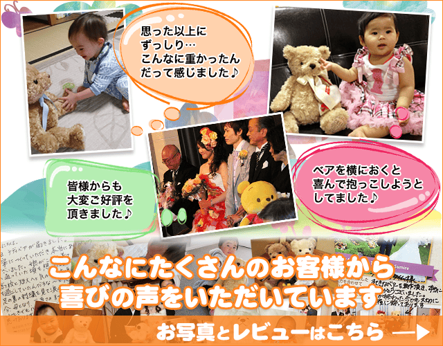 公式サイトには、日々多くのお客様から写真付きの感動的なメッセージが寄せられています。(https://www.teddybear-time.com/blog/id/category/impression )「震災で思い出の品を失ったけれど、このベアを作ることで娘が生まれた時の感動をもう一度形にできました」