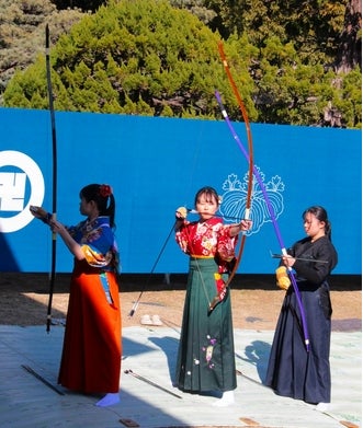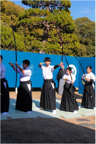- 男女とも和服着用(弓道着可)(簡単な着付けはお手伝いします)