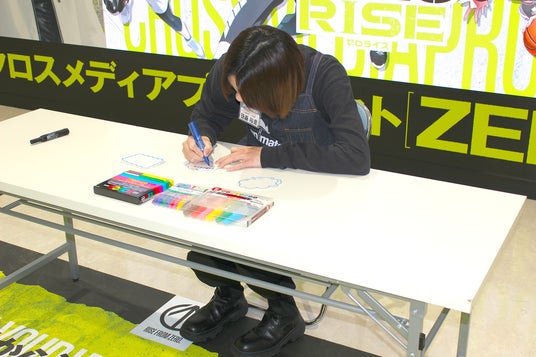 当日、アニメイト池袋本店では1階エントランス広場でZERO RISEのラッピング装飾を展開中ということで、店内には笹森さんが演じるキャラクター・マドカのパネルの設置や、マドカが所属するストリートバスケチーム「UNFIXXX」キャスト3名のサイン入りバスケットボールの展示など作品一色の空間となっていました。