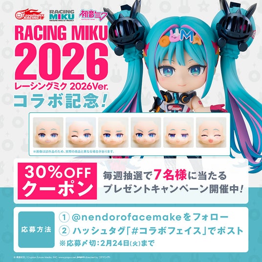 株式会社グッドスマイルカンパニー(本社:東京都千代田区、代表取締役社長:岩佐厳太郎、以下 グッドスマイルカンパニー)の公式サービス『ねんどろいどフェイスメーカー』は、ただいま予約受付中の『ねんどろいど レーシングミク 2026Ver.』とのコラボを開催中!