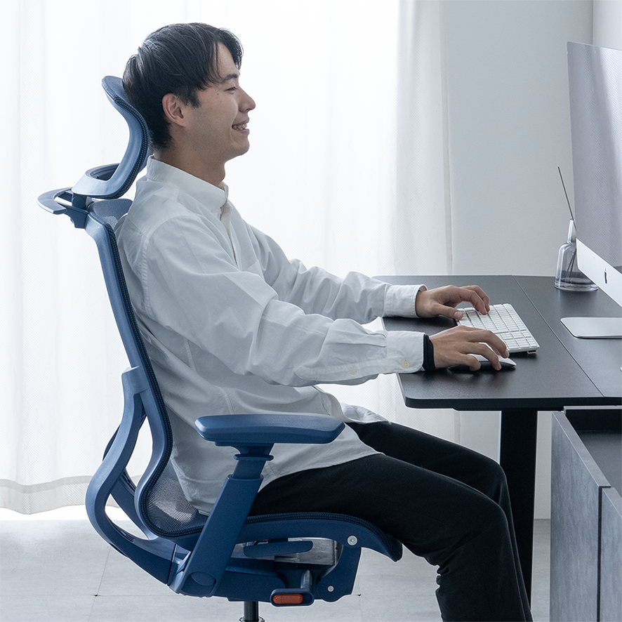 本製品は、アームレストや素材だけでなく、チェア全体の構造がユーザーの身体をサポートするよう人間工学に基づいて設計されています。集中した作業時間から短い休息まで、あらゆるシーンで理想的な姿勢を維持するための機能が満載です。