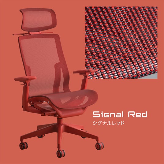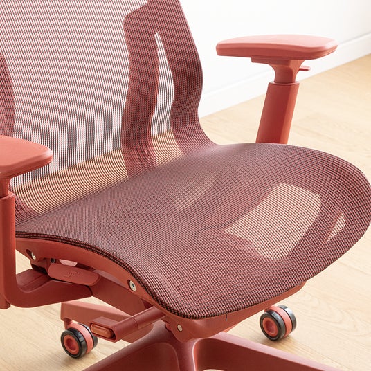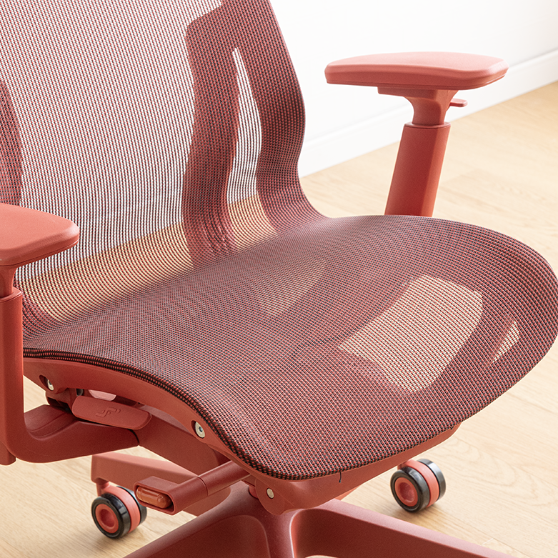 メッシュ生地、フレーム、アームレスト、そしてキャスターに至るまで、すべての構成パーツを同系色で統一した「ワントーンデザイン」を採用。