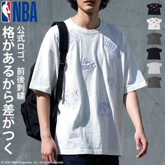 NBAの人気チームロゴを大胆に配した公式ロゴ刺繍Tが登場。スポーティ×ラフな表情に刺繍が映え、カラー入りとワントーンの2タイプ展開。綿100%のさらりとした肌触りで、デイリーに着回せる一枚。
