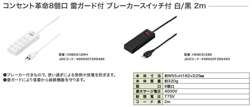 インテリア家電製品および、PCサプライ品の製造販売を手掛ける株式会社ヤザワコーポレーションは、コンセント革命タップシリーズを2月中旬頃に発売いたします。
