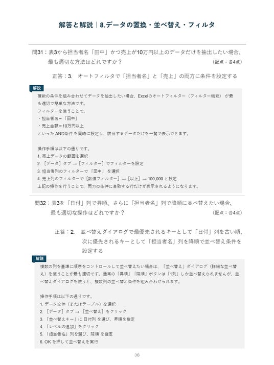 本診断は単なる知識を問うクイズではなく、実際の売上データやテーブル操作を想定した「実務再現型」の診断です。(以下画像は設問・解説の一部抜粋です)