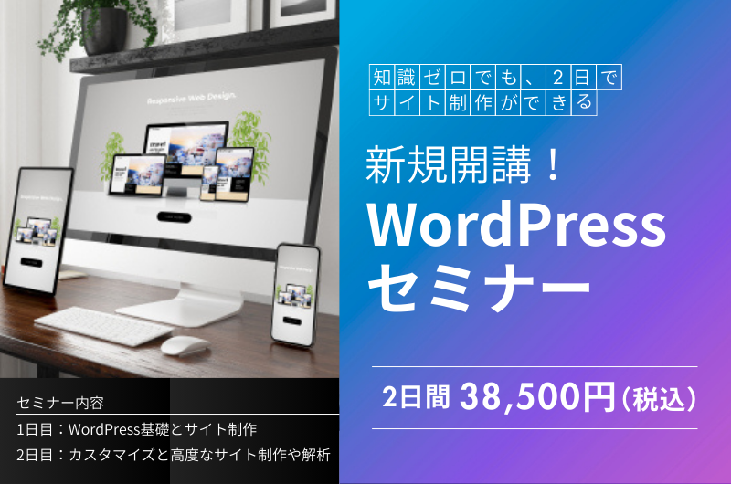 この度、Web制作初心者の方でも安心して学べる「WordPressセミナー」を開講いたしました。