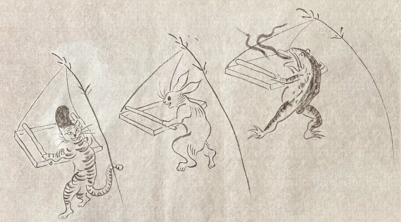 和紙づくりの工程を描いた「鳥獣戯画」絵巻がモチーフ