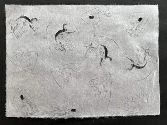 伝統の手漉き和紙に、鳥獣戯画の世界を透かしで表現