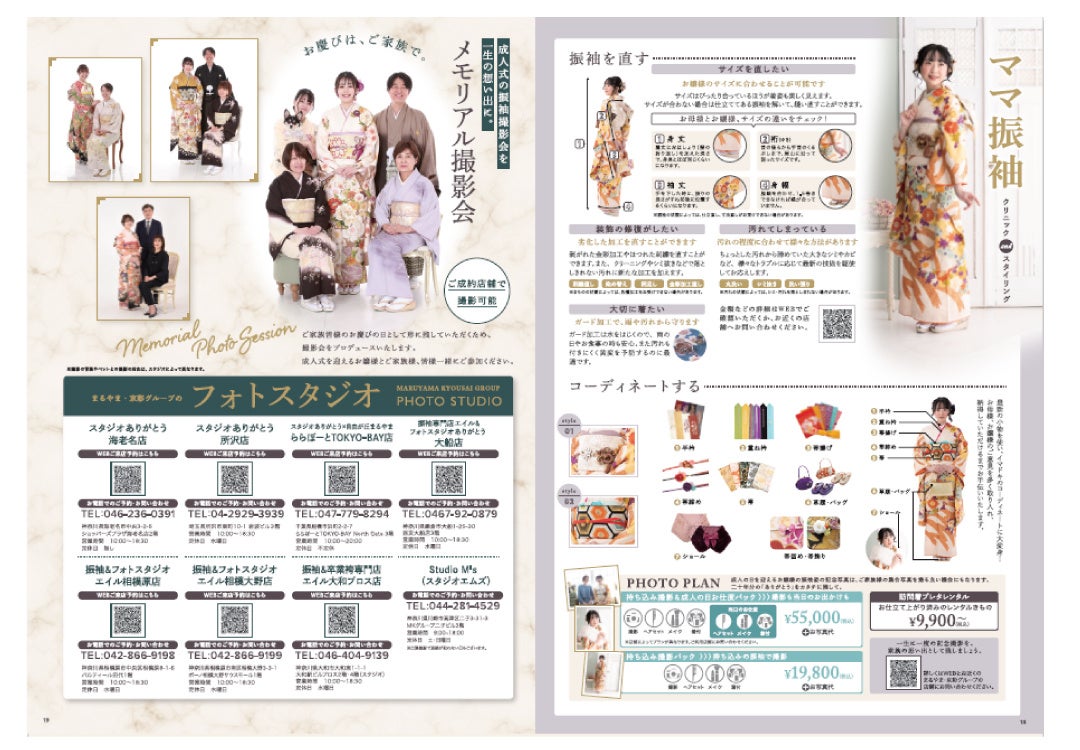 振袖選びをトータルでサポートするため、ママ振袖のアレンジ提案、髪飾り、そして記念撮影会もご紹介。組み合わせ次第で、あなただけの晴れ舞台を彩る、洗練された振袖スタイルが完成します。