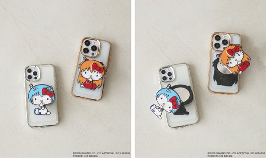 『エヴァンゲリオン』シリーズの中でも人気が高いレイとアスカとハローキティが融合した、スマホグリップ型のミラー。