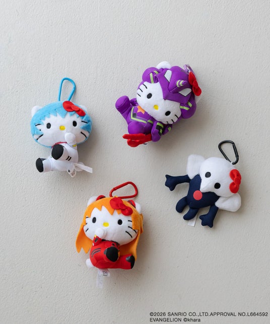 プラグスーツや初号機など細部までこだわった『エヴァンゲリオン』のクールな世界観をキュートに表現した、ファン必携のトイキーホルダー。世界中で愛されるハローキティが、『エヴァンゲリオン』のキャラクターたちとの掛け合わせが愛らしいデザインで、バッグや鍵に付けて、いつでも「エヴァンゲリオン×ハローキティ」の最強コラボレーションを楽しめます。