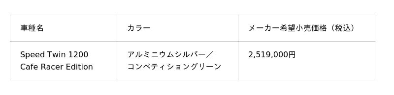 「Speed Twin 1200 Cafe Racer Edition」はメーカー希望小売価格2,519,000円(税込)