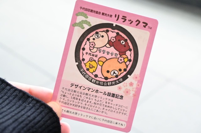 マンホールは「千代田区観光協会観光大使」でもあるリラックマと区の花「さくら」をモチーフにデザインされています。