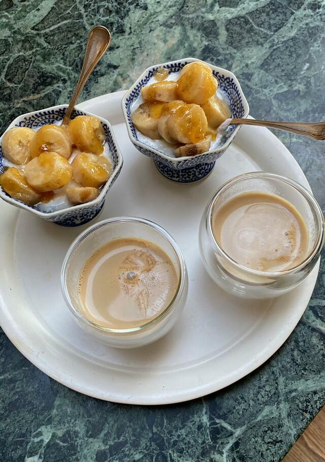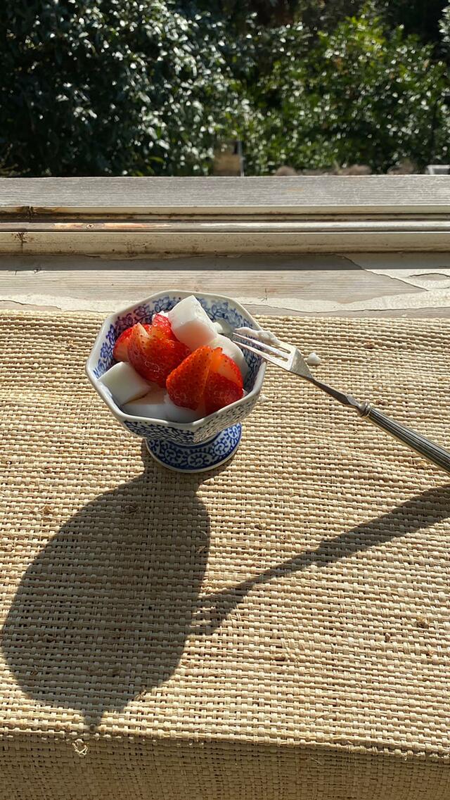 ブルガリアヨーグルトアイスと苺。TORUくんの作った煮アナゴ、とてもうまし。