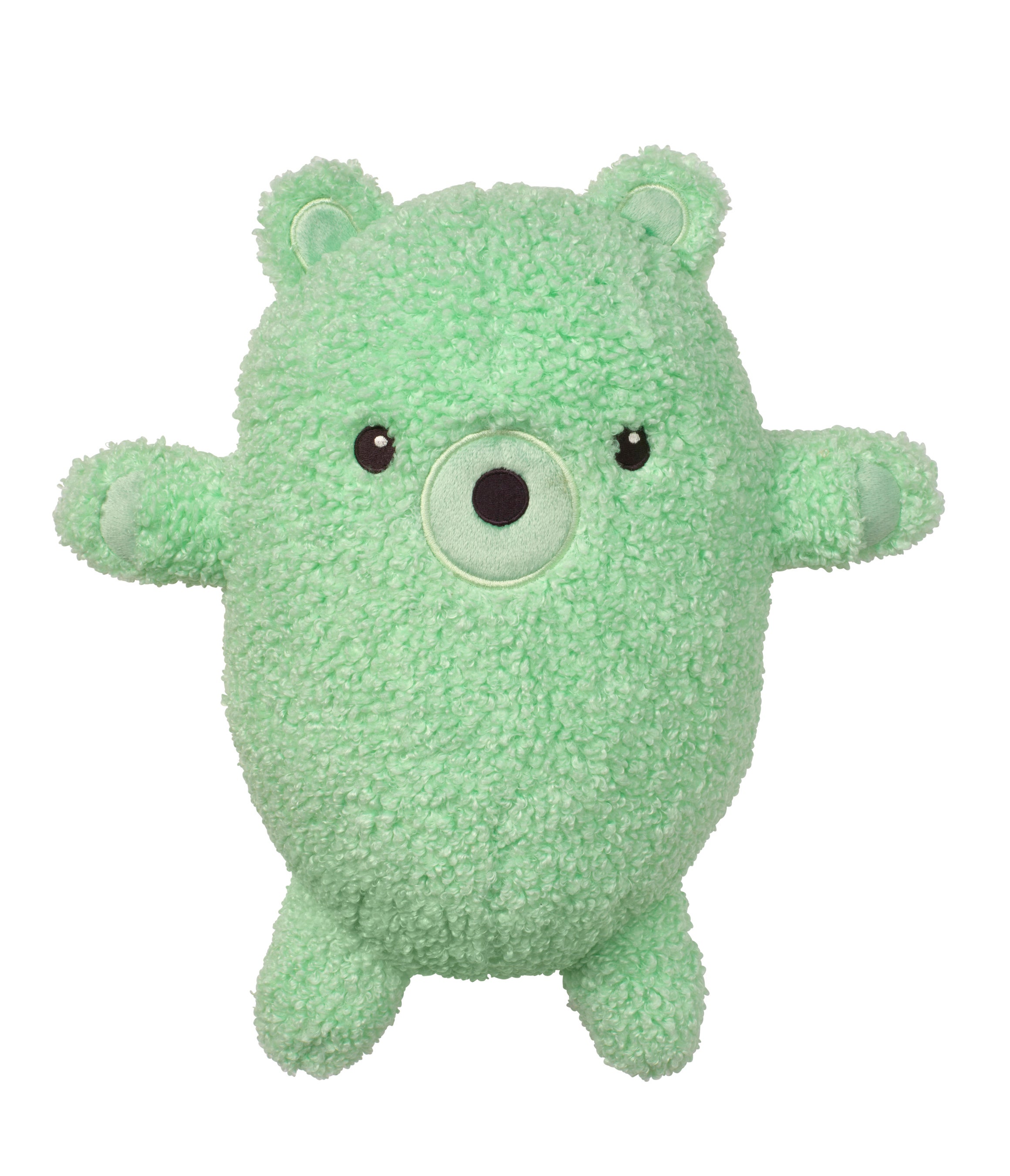 人なつっこい顔と柔らかいフワフワの体が特徴のクマは、遊びの時間や読み聞かせ、親友にそばにいてほしいときに、子どもの心を優しく包み込みます。洗濯機で洗えるのでお手入れが簡単で、いつでも清潔な状態で抱きしめることができます。色はグリーンとオフホワイトの2色からお選びいただけます。