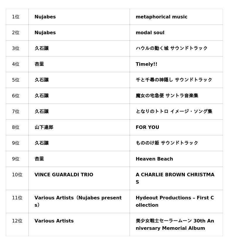 トップは Nujabes『metaphorical music』『modal soul』となりました。