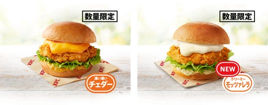 左から「チーズにおぼれるフィレバーガー(濃い濃いチェダー)」「チーズにおぼれるフィレバーガー(クリ~ミ~モッツァレラ)」イメージ