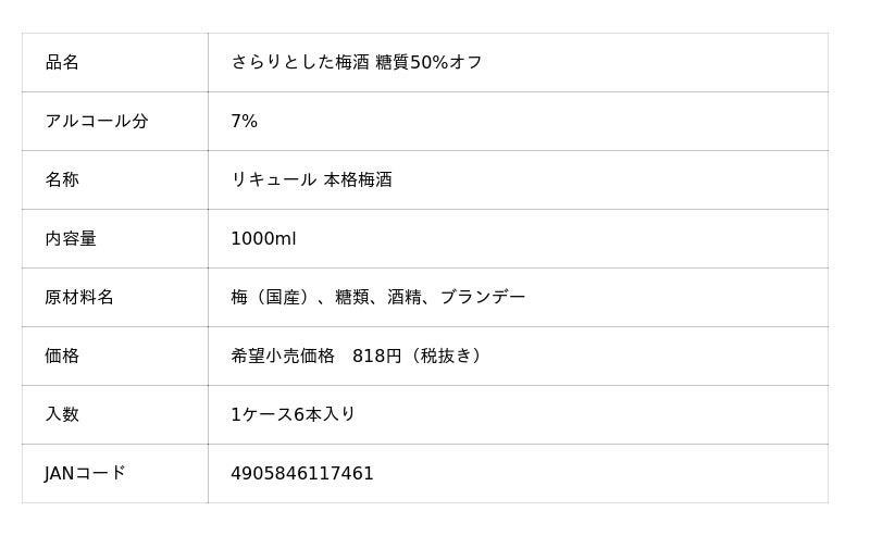 「さらりとした梅酒 糖質40%オフ」は「さらりとした梅酒」ブランドの糖質オフ商品として2016年9月6日(火)に発売した国産梅100%使用、酸味料・香料・着色料不使用の本格梅酒です。