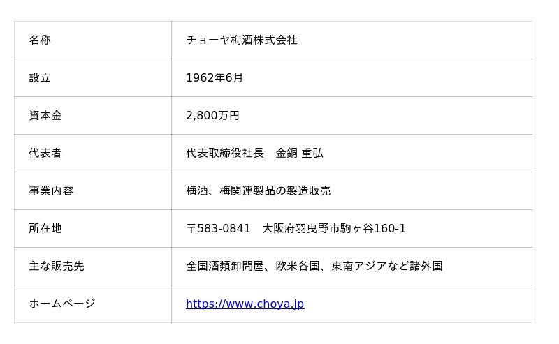 チョーヤ梅酒株式会社(本社:大阪府羽曳野市、社長:金銅重弘、以下チョーヤ)は、本格梅酒
