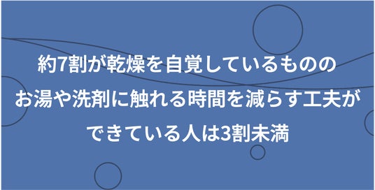約7割が乾燥を自覚しているもののお湯や洗剤に触れる時間を減らす工夫ができている人は3割未満